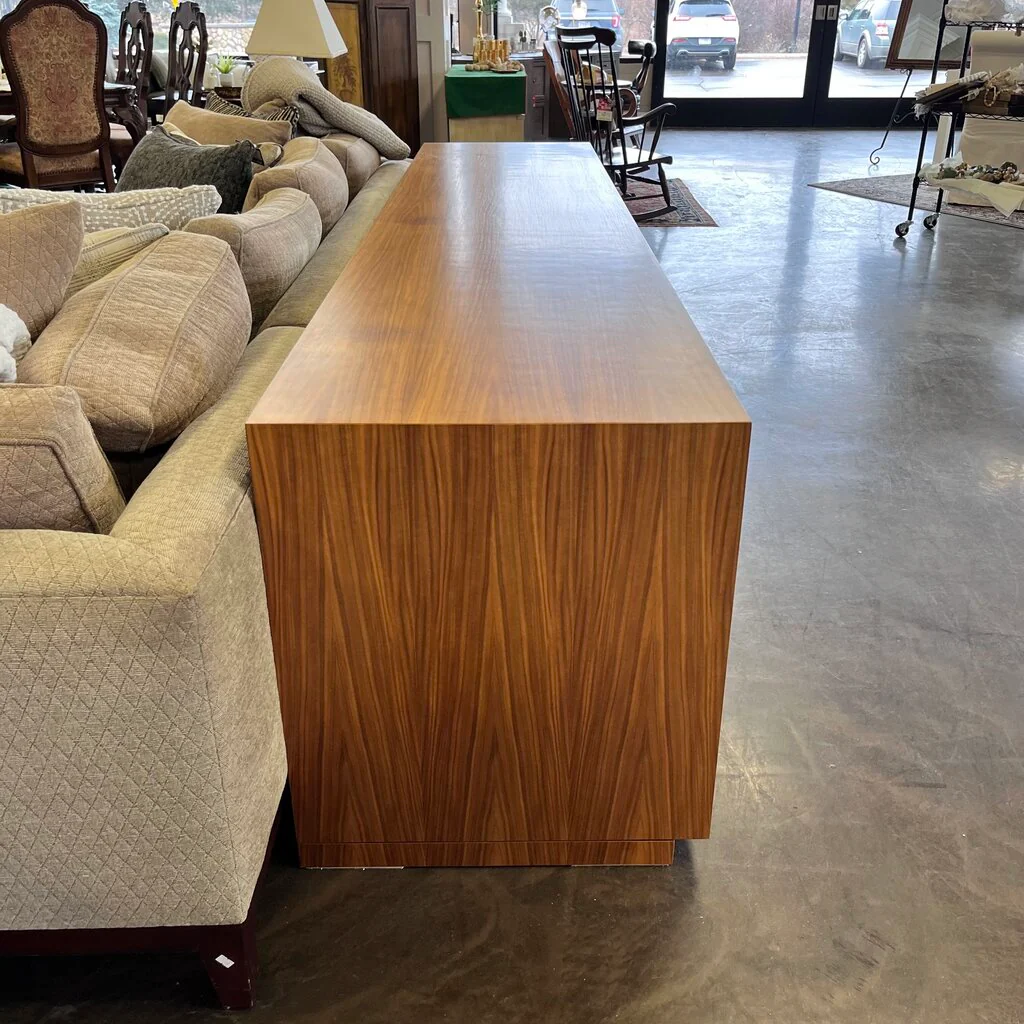 Condition Notes: Previously owned. This custom Made piece will be the focal point of any room. Featuring ample space for storage, lattice work cabinets, and chrome hardware that add a touch of sophistication. Overall great condition.