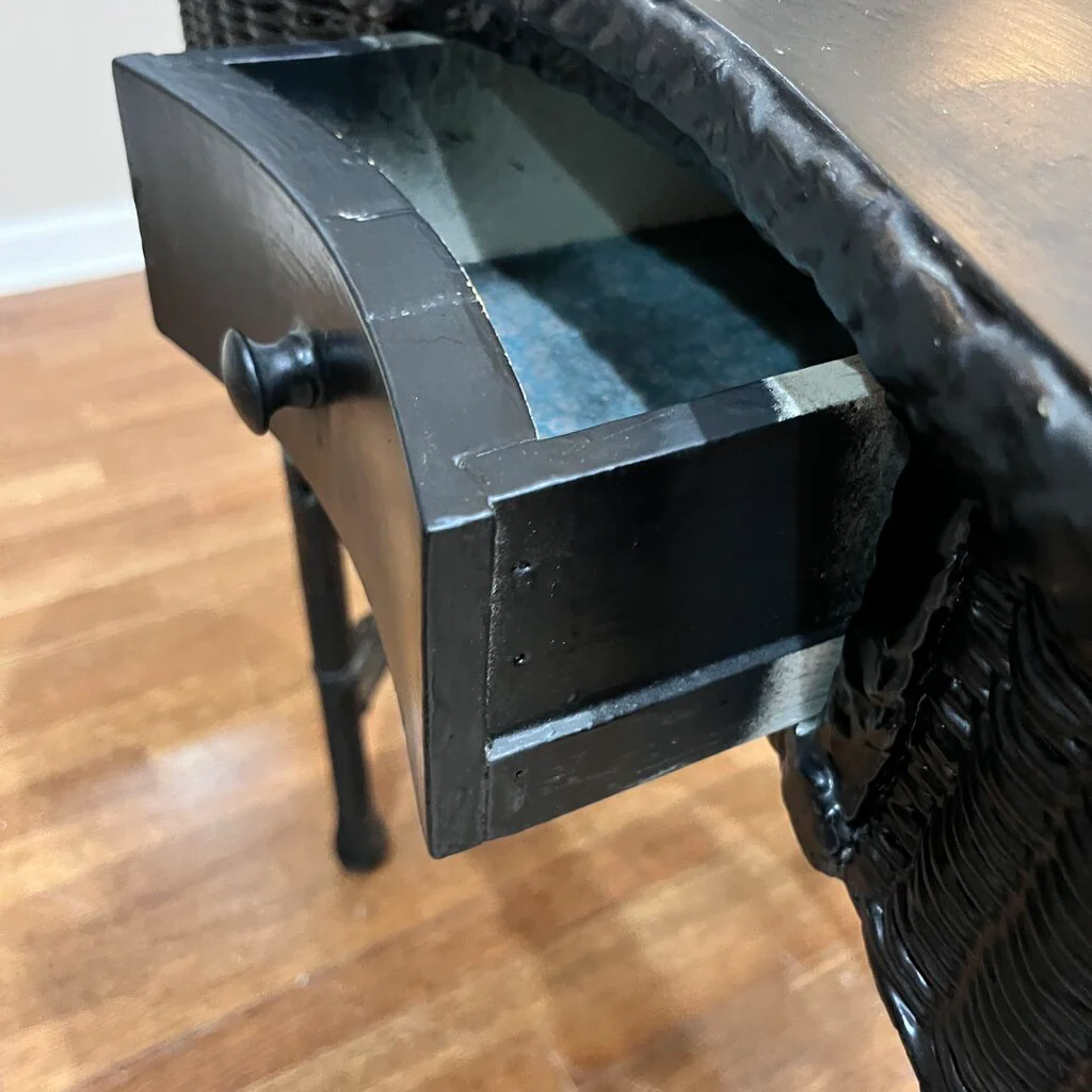 Condition Notes: Previously owned. Elevate your space with this stunning wicker desk, a perfect blend of timeless charm and practicality. Boasting a unique wicker design on the front panels adding a touch of coastal charm, a drawer and baskets and carved spaces for smaller storage to keep your space neat and organized. Overall good condition.